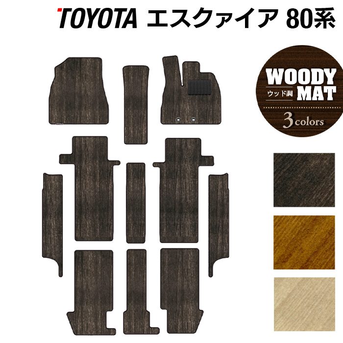 トヨタ エスクァイア 80系 フロアマット+ステップマット ◆ウッド調カーペット 木目 HOTFIELD