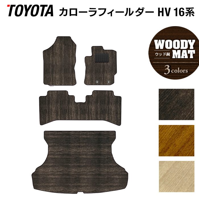 トヨタ カローラフィールダー ハイブリッド フロアマット+トランクマット ラゲッジマット ◆ウッド調カーペット 木目 HOTFIELD