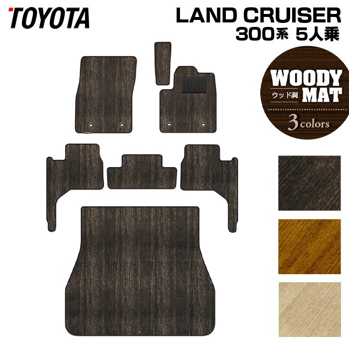 トヨタ ランドクルーザー 300系 5人乗 フロアマット+トランクマット ラゲッジマット ◆ウッド調カーペット 木目 HOTFIELD