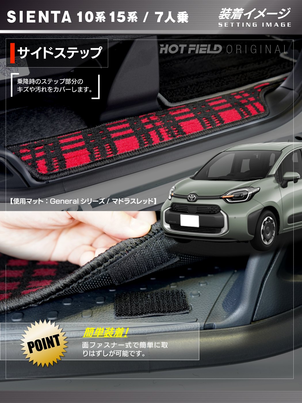 他社製品よりカバーする領域が広く(前方の細い部分)、 純正マットに追加しても一体感があって非常に良いです。 ※プレーンブラック×オーバロック:グレー