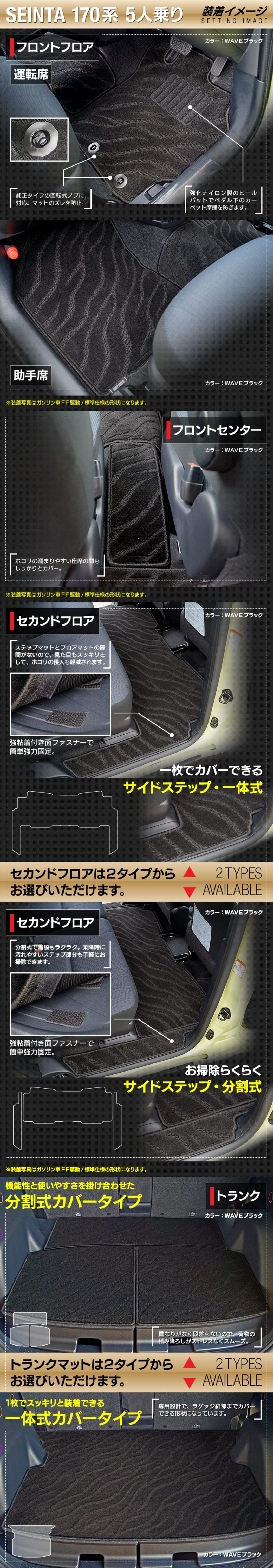 商品説明●後席とサイドステップマットの形状を2タイプから選択頂けます。
