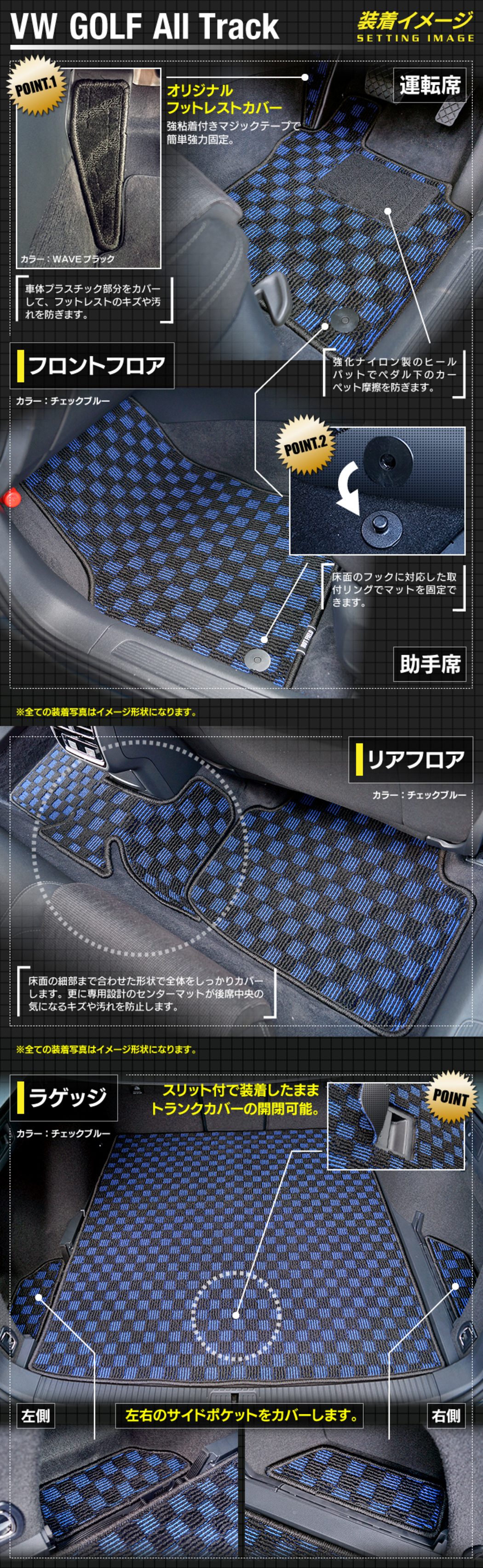 VW フォルクスワーゲン ゴルフオールトラック フロアマット+トランクマット ラゲッジマット ◆カジュアルチェック HOTFIELD