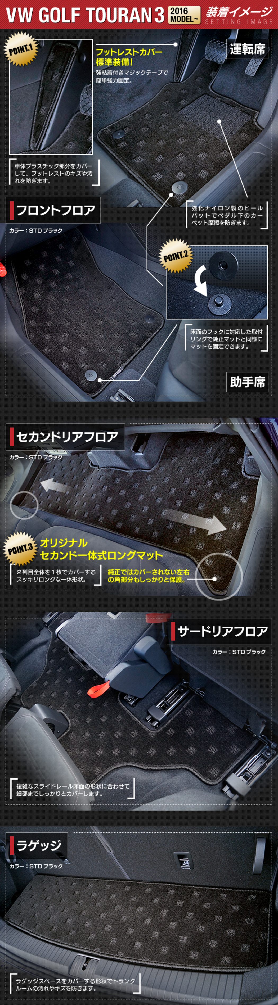 VW 新型 ゴルフトゥーラン3 Golf Touran3 フロアマット+トランクマット ラゲッジマット ◆ジェネラル HOTFIELD