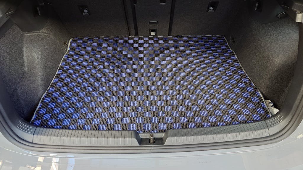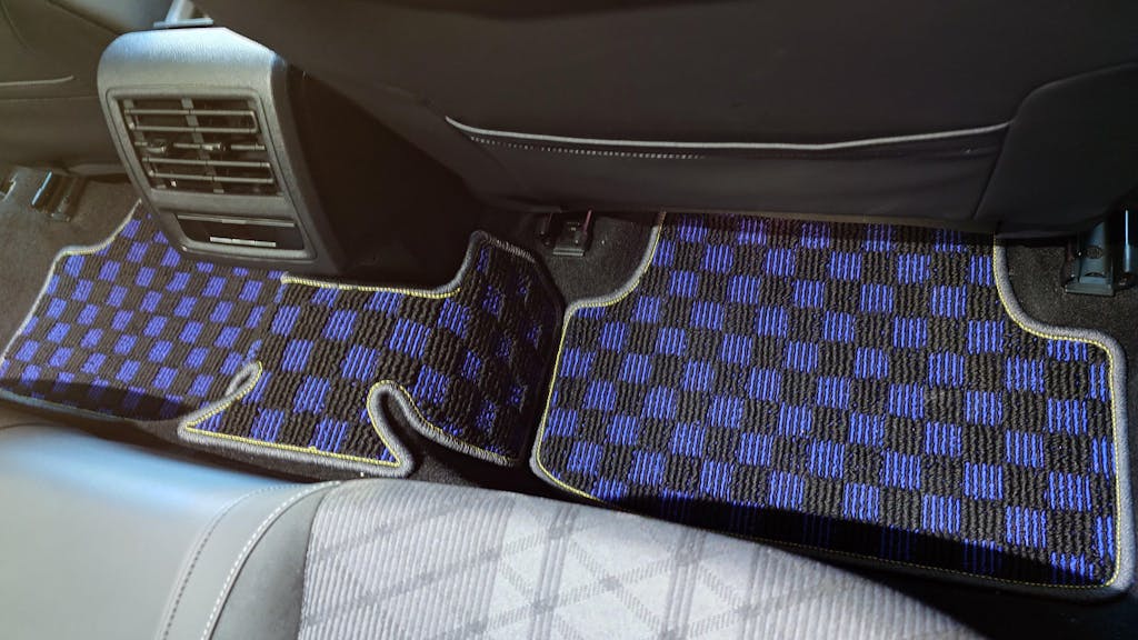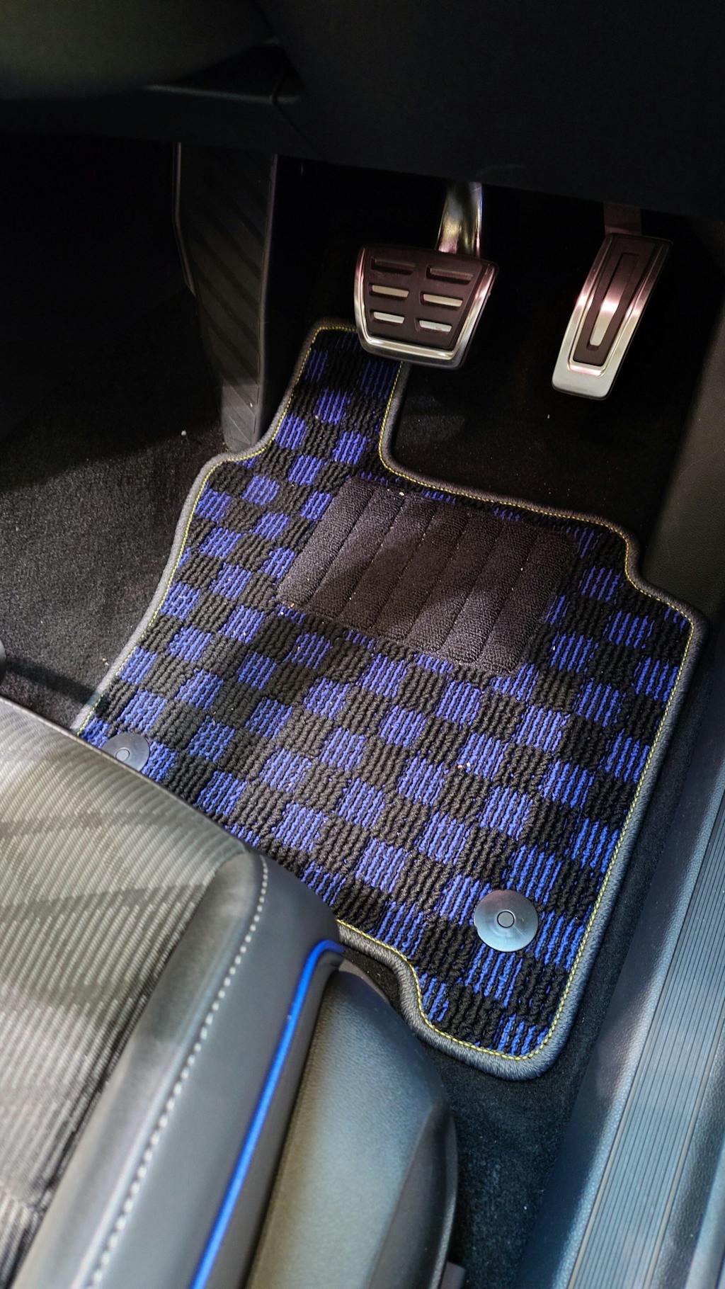 年末ギリギリの納車に間に合わせて頂きありがとうございました、サンプル届く前に発注してディーラー直送したので納車までドキドキでしたが期待以上の仕上がりに思わずニンマリ。 R-Lineの挿し色の青チェックにボディカラーのグレーで縁取り、ステッチはイエローでバッチリでした! ラゲッジも同仕様で作成、カッコ良いです。 フットレストはまだ未装着ですが、願わくば右のフットレストも作成して下さい。 とにかく国産セミオーダーでこの仕上がりにこの価格、今後周りにオススメしまくりますね。