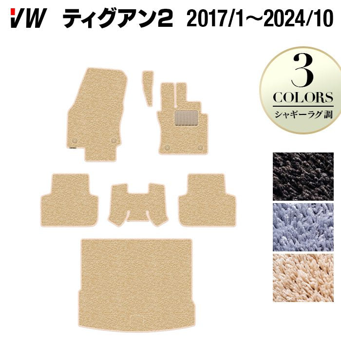 VW フォルクスワーゲン ティグアン 5N系 2017年1月~2024年10月モデル対応 フロアマット+トランクマット ラゲッジマット ◆シャギーラグ調 HOTFIELD