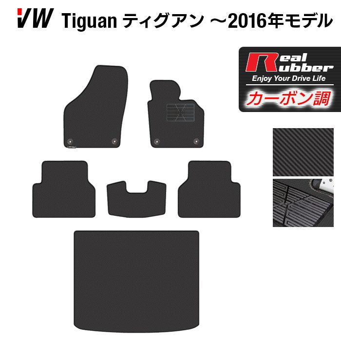 VW フォルクスワーゲン ティグアン 5N系 ~2016年モデル対応 フロアマット+トランクマット ラゲッジマット ◆カーボンファイバー調 リアルラバー HOTFIELD